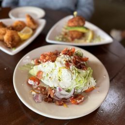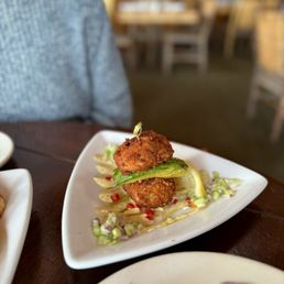 First timer but won't be my last! Met a friend for lunch and had the very delicious lobster roll sandwich with a side of fries. Let's talk about those fries! Just the way I like them - crispy, "flaky" outside & soft inside. Delicious! Now that lobster roll/sandwich also delicious. My friend surprised me with a late birthday surprise- their Snickerdoodle cheesecake, I think it was called. Sinful is what I would say - lol! Warm hot fudge drizzled, crushed snickers & I think toffee? We shared it & still couldn't finish it! We were stuffed -haha